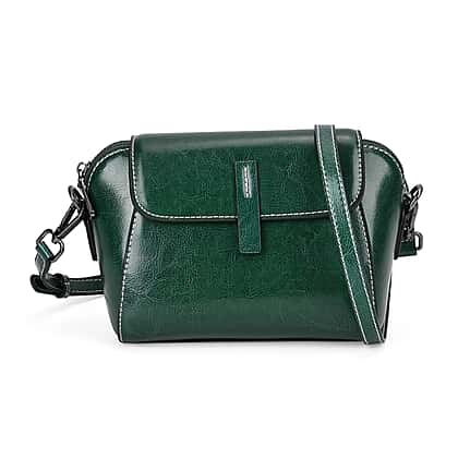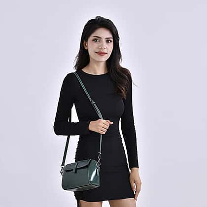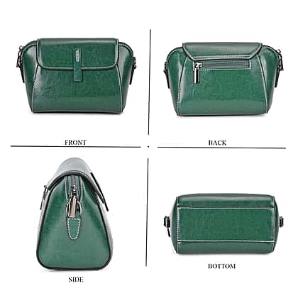 One Time Deal - Designer Inspired Leather Patterned Crossbody Bag (Size 23x10x14 cm) - Green