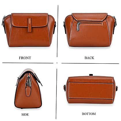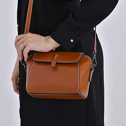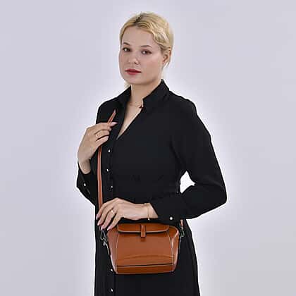 One Time Deal - Designer Inspired Leather Patterned Crossbody Bag (Size 23x10x14 cm) - Tan