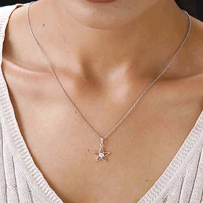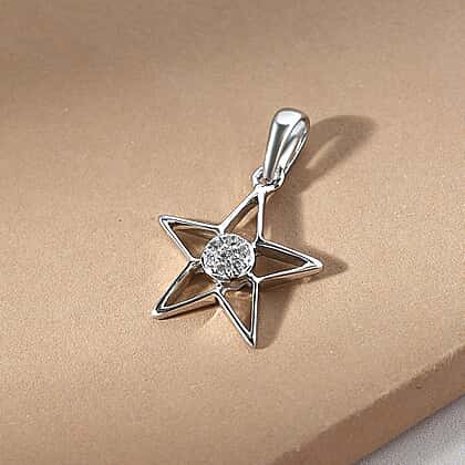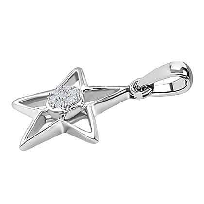 9K White Gold SGL Certified Diamond (I3/G-H) Star Pendant 0.05 Ct