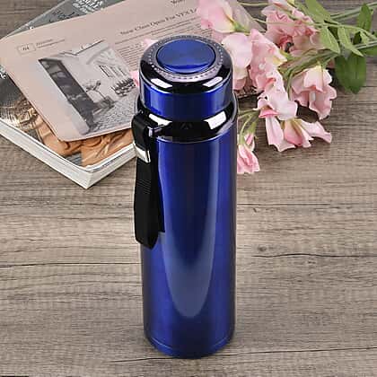 Double Wall Flask with Stainless Steel Filter and Lanyard 1000ml - Blue