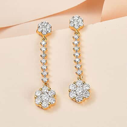 You are sure to win hearts with these moissanite dangling cluster earrings on your earlobes. Set in the luminous embrace of 18K vermeil yellow gold plated sterling silver, each earring boasts a cluster of shimmering moissanite rounds that catch the light beautifully. These cluster earrings exude an ethereal glow as they dance with your every movement, ensuring all eyes are on you. Perfect for daytime charm and evening allure, they're a versatile yet luxurious addition to any jewellery collection