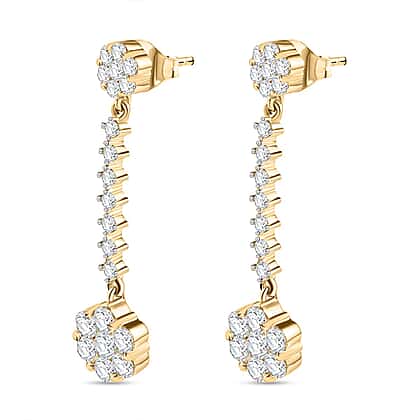 Moissanite Dangling Earrings in 18K Yellow Gold Vermeil Plated Sterling Silver 2.20 Ct.