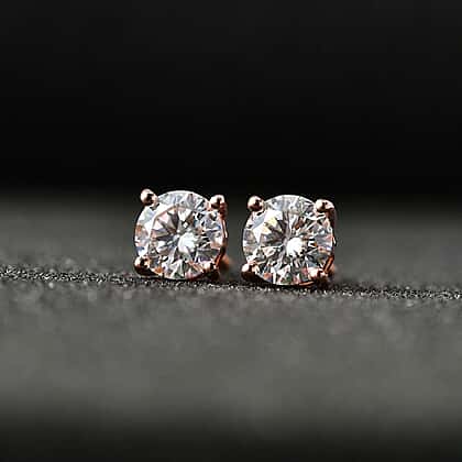 Moissanite Solitaire Stud Earrings in 18K Vermeil RG Plated Sterling Silver 1.44 Ct