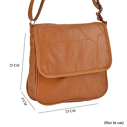 100% Patchwork Leather Solid Crossbody Bag - Tan