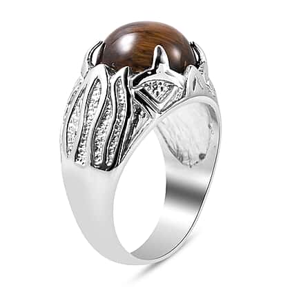 Cab Tigers Eye Ring in Stainless Steel 12.50 Ct.