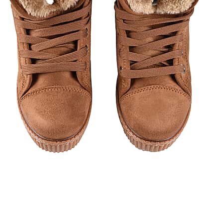 Camel Colour Faux Fur Lined Lace-Up Ankle Boots