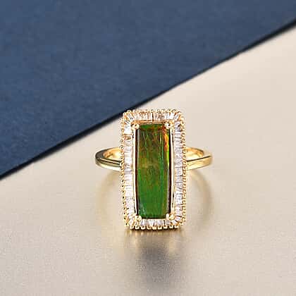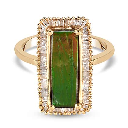 Canadian Ammolite and Diamond Ring in 14K Gold Overlay Sterling Silver 2.56 Ct.