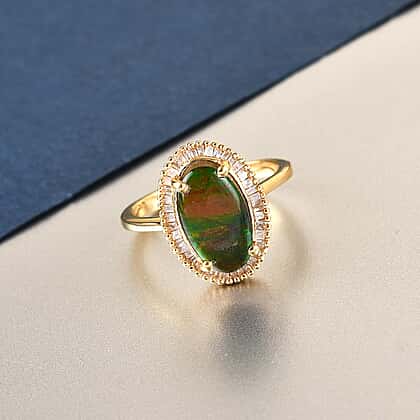 2.44 Ct. AA Canadian Ammolite and Diamond Halo Ring in Gold Plated Sterling Silver