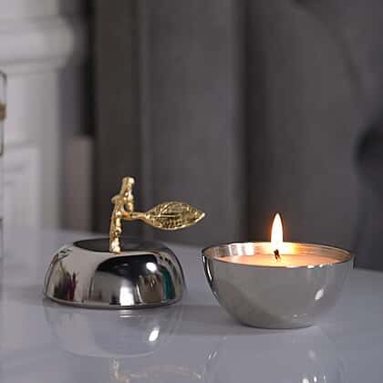 An apple a day keeps the doctor away is a fact and with this we have an apple-shaped candle holder with candle serves as a perfect holiday gift while adding a splash of elegance to your décor. Warm and soothing, the sweetness of vanilla is set in a candle holder crafted from silver finish metal with a golden colour detailing on the top to make it look more like an apple. This candle has a pleasing and calm scent when paired nicely with moments of relaxing aromatherapy and meditation.