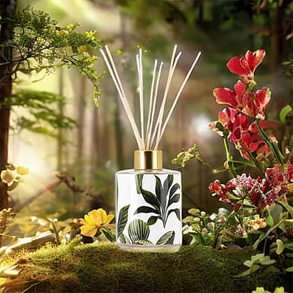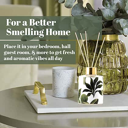 Reed Diffuser in Enamled Glass Bottle with Gold Cap (Size 24x6x6 cm) - 150ml - Green & White