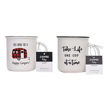 Set of 2 Mug Scented Candle Take Life One Cup at a Time & Happy Camper