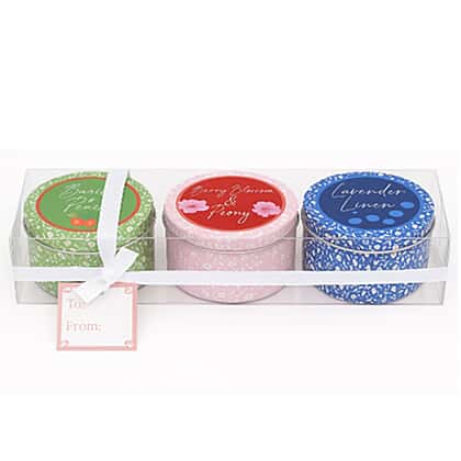 Set of 3 Tin Candles - Basil & Peach, Berry Blossom and Peony Lavender