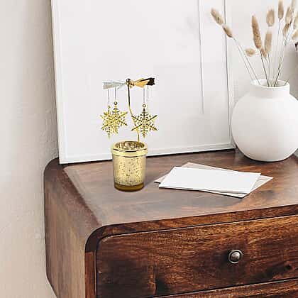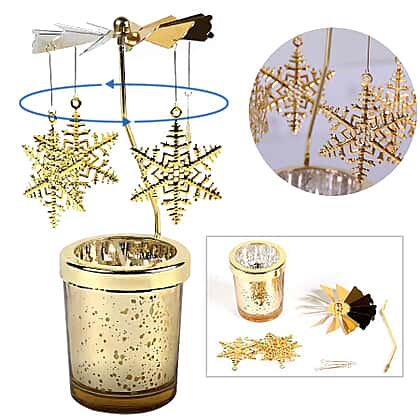The 5th Season - Wave Point Glass Candle Holder with Spinning Golden Snowflake (Size 18x10x5.5cm)