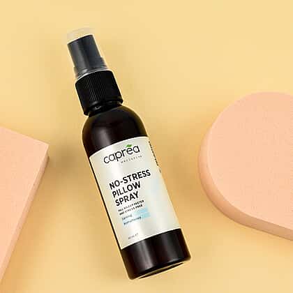 Discover tranquillity and unwind with Caprea No-Stress Pillow Spray Calming Aromatherapy. Infused with soothing botanical extracts, this spray creates a serene environment for restful sleep. A few spritzes on your pillow release a gentle, calming aroma that helps alleviate stress and promote relaxation. Embrace the power of aromatherapy and transform your bedtime routine into a peaceful sanctuary, waking you up refreshed and rejuvenated each morning. Sweet dreams await with Caprea No-Stress Pillow Spray.