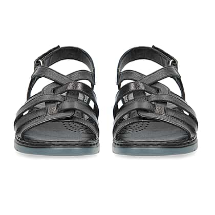 CAPRICE Leather Flat Sandal (Size 3.5) - Black