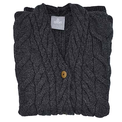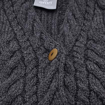 Aran Woollen Mills Merino Wool Ladies Sleeveless Cardigan (Size Medium, 68x48 Cm) - Charcoal