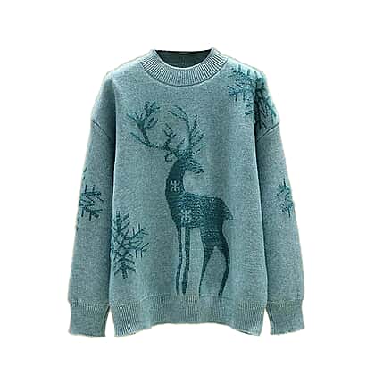 Kris Ana Christmas Reindeer Wool Mix Jumper One Size (8-16) - Teal Blue