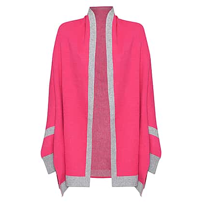 Kris Ana Coloured Border Cardigan One Size (8-20); L=70 Cm - Fuchsia and Grey
