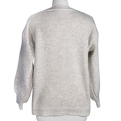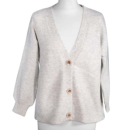 Kris Ana V Neck Wool Cardigan One Size (8-16) - Grey