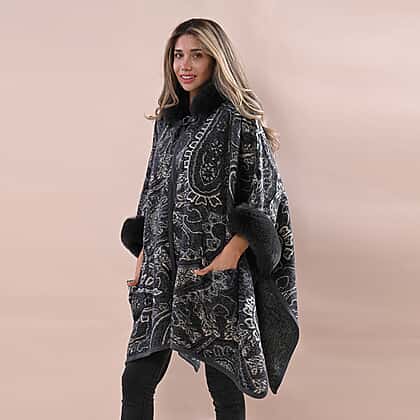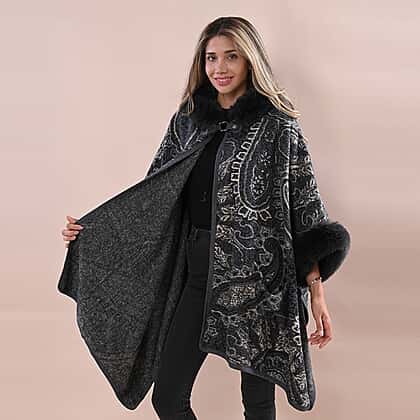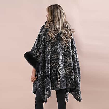 LA MAREY Cashew Flower Pattern Faux Fur Cape - Gray