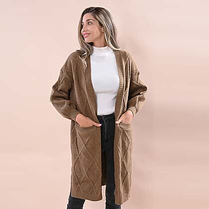 LA MAREY Chunky Cable Knitted Long Cardigan ( One Size )