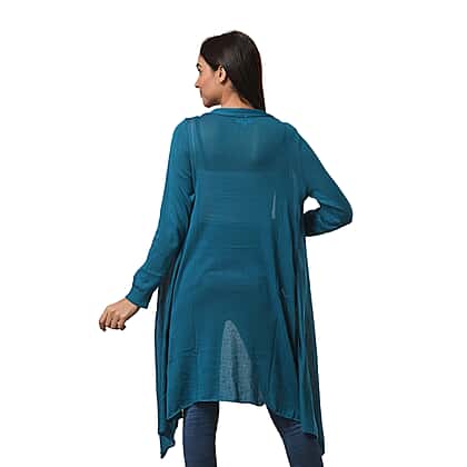 Marigold Lotus: 100% Cotton Knit Long Sleeve Waterfall Cardigan in Teal Green