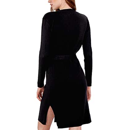 NOVA OF LONDON Ribbed Long Button Up Women's Cardigan with Tie Wrap in Black