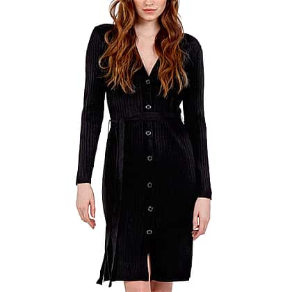 Nova of London Ribbed Long Button Up Cardigan with Tie Wrap in Black