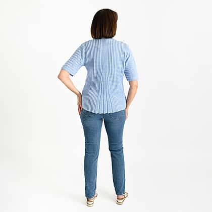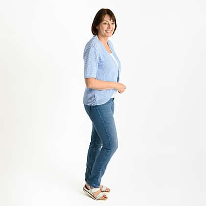 Complete your wardrobe collection with this elegant pure and natural cotton blended bolero. It is made from blended fabric, with a knitted design and an open front for a classic look. You can pair it with a solid colour top.