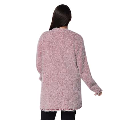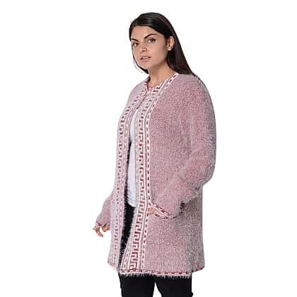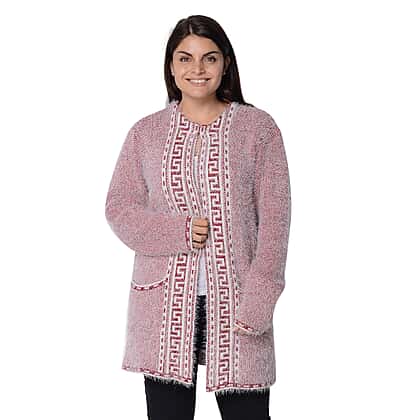 Soft and Smooth Winter Fret Pattern Sweater Coat with 2 Pockets Size 53x79 Cm in Red and White Colour