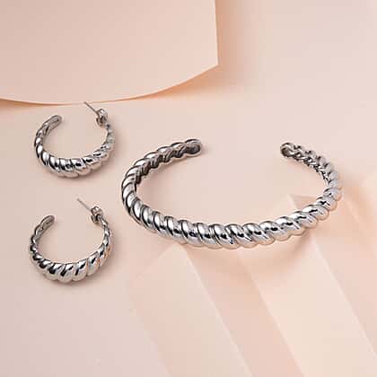 2 Piece Set - Bangle and Earring Pure White Stainless Steel