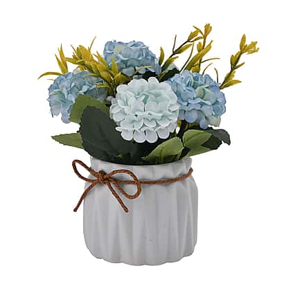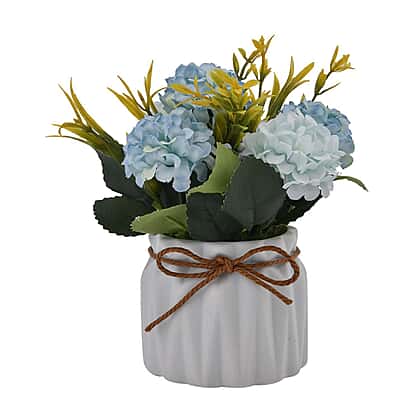 Carnation Faux Flower with Ceramic Basin (Size 15x8x8 cm) - Blue