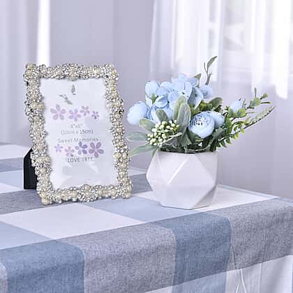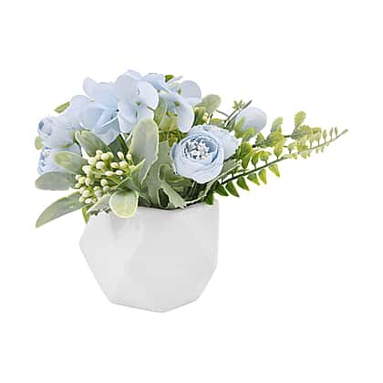 Carnation Faux Flower with Ceramic Basin (Size 15x9x9 cm) - Blue and White