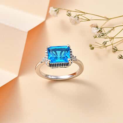 Carribean Quartz and Natural Zircon Ring in Rhodium Overlay Sterling Silver 2.97 Ct
