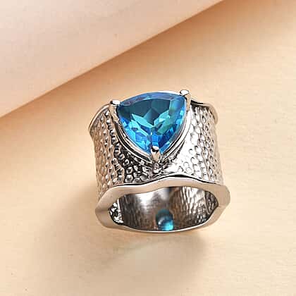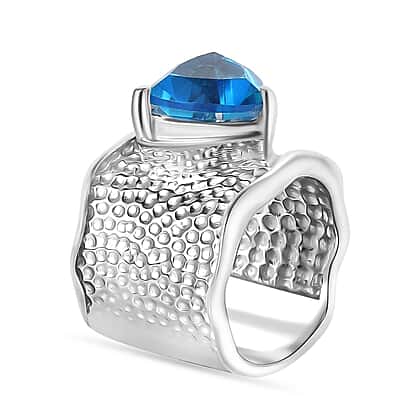 Carribean Quartz Solitaire Ring in Silver Tone 4.80 Ct.