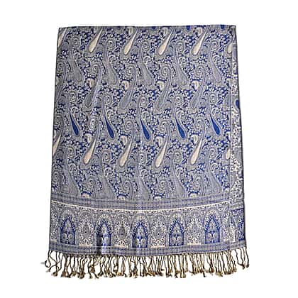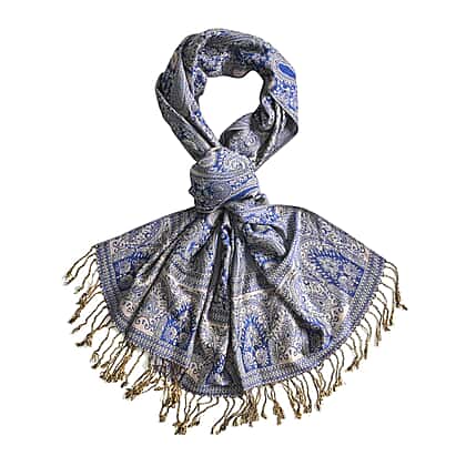 Fringed Scarf (One Size 180x70 cm) - Blue
