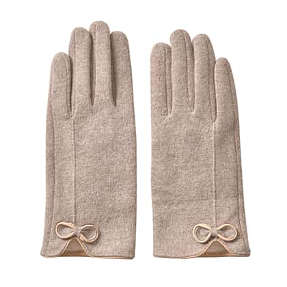 Cashmere Touch Screen Gloves with Decorative Bowknot - Beige