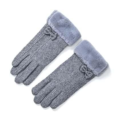 Cashmere-Blend Winter Gloves with Faux Fur Trim and Bow Detail - Touchscreen Friendly