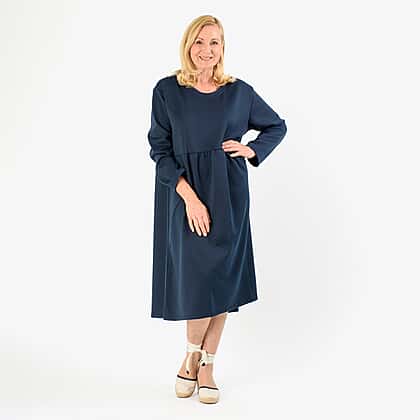 Casual Long Sleeve Sweat Smock Dress (Size - One Size 8-20) - Navy