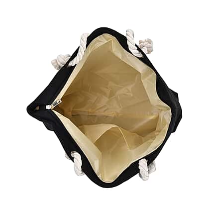 Cat Pattern Tote Bag with Mettalic Glitter Gold - Black