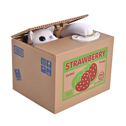 Start your savings by inserting a coin daily in this panda pattern coins stealing box. Just put your coin on the plate and press, and the cute Panda will come out of the cardboard design box to steal your coins which is very funny and creative and help you collect your coins. Attractive and exciting piggy bank with a unique clear voice design. When you put the coins on the plate, the panda will say a clear "Hello." After taking away your money, it will say, "Thank you." This money box is a fabulous gift for children for Christmas and Birthdays.