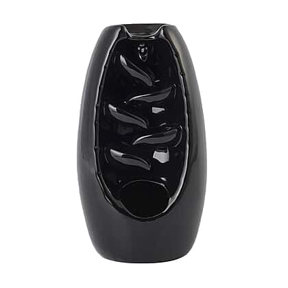 Ceramic Backflow Incense Holder with 120 Incense Cones, 30 sticks, Tweezer and Base - Black