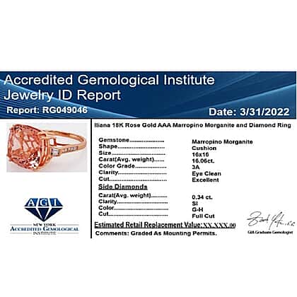 Certified and Appraised ILIANA 18K Rose Gold AAA Morganite and Diamond (SI-G-H) Ring 16.40 Ct, Gold Wt. 5.65 Gms