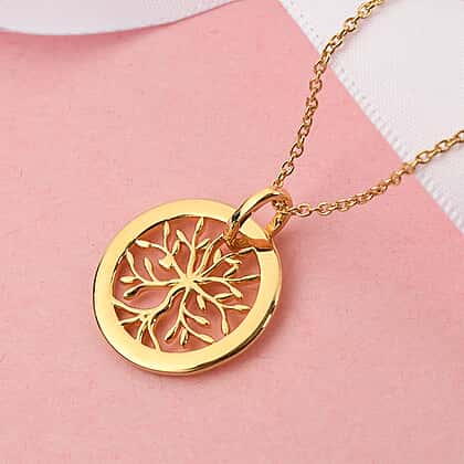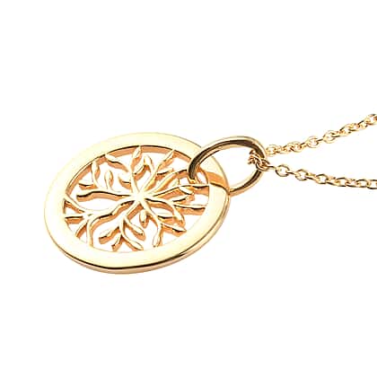14K Yellow Gold Overlay Sterling Silver Tree of Life Pendant with Chain (Size 18), Silver Wt. 5.24 Gms