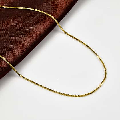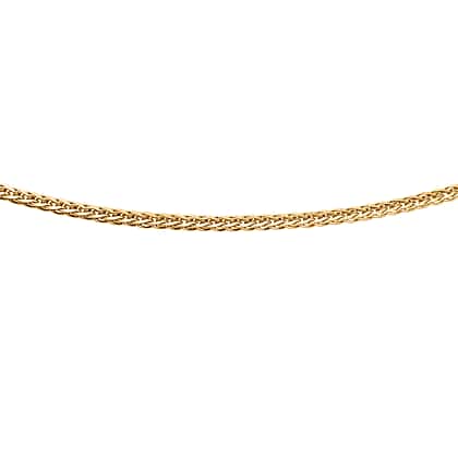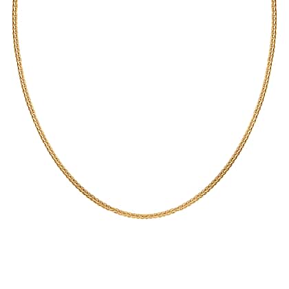 This 24K Yellow Gold Standard Chain is a must-have accessory, offering a variety of styling options. It is made in yellow gold to lend it a timeless finish, while its lightweight design makes it comfortable to wear throughout the day. The wheat chain pattern comprises twisted oval links that are braided together to create a sturdy, durable chain. The Size 18 chain, which rests at the base of the neck, can either be worn by itself or with a small pendant.