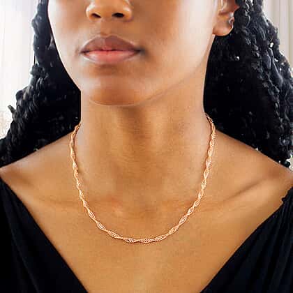 9K Rose And White Gold Twist Curb Chain 18 Inch