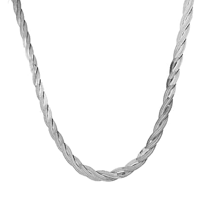9K White Gold Plait Herringbone Necklace 17 Inch