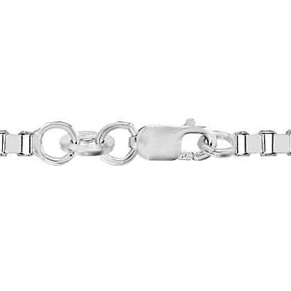Trust this white gold chain to lend a dash of stylish elegance to her ensemble. The majestic box-shaped links interlocked in a neat array, gently let the light shimmer on their angular silhouette as she twirls in front of the mirror appreciating its effect on her. It draws a refined portrait of her neckline, bringing attention to the intricate details of her dress. The chain's subtle shine is a perfect balance to her glamorous personality.