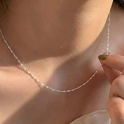 9K White Gold Twist Curb Chain (Size - 18) with Spring Ring Clasp