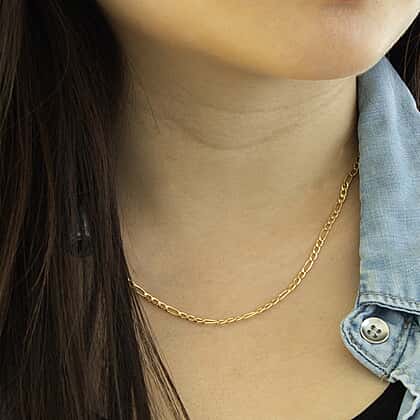 Crafted from yellow gold that has been revered throughout history and continues to be adorned in modern times, this Figaro chain is a true classic that continues to enchant fashion enthusiasts of all ages. Its versatility knows no bounds, offering multiple ways to elevate your fashion game with a touch of regal glamour. The Size-16 chain will sit at the base of your neck like a royal ornament.